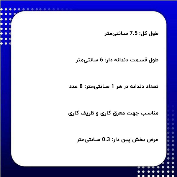- طول قسمت دندانه دار: 6 سانتیمتر
