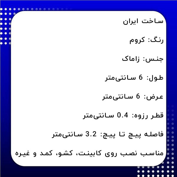 - فاصله پیچ تا پیچ: 3.2 سانتیمتر