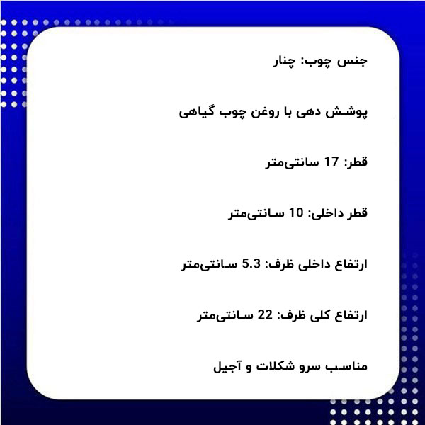 - ارتفاع کلی ظرف: 22 سانتیمتر