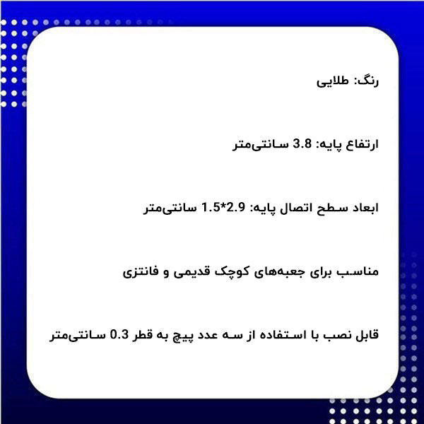 - ابعاد سطح اتصال پایه: 2.9*1.5 سانتیمتر