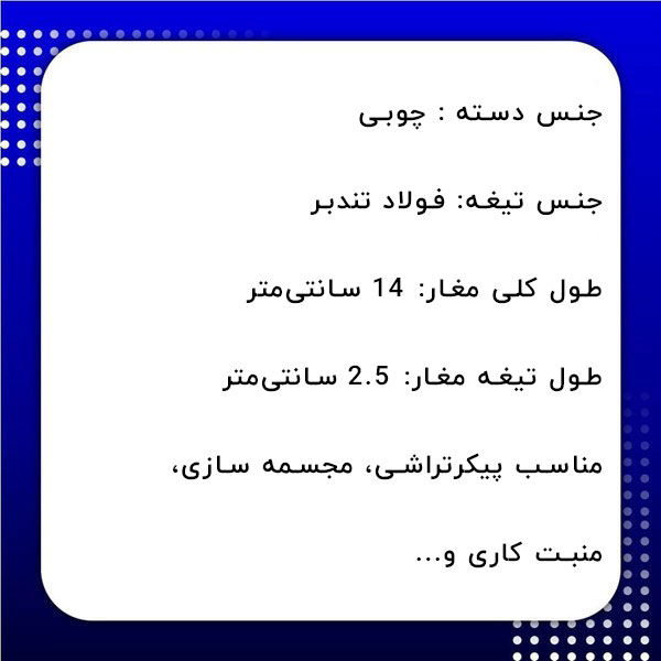 برای اطلاع از قیمت مغار چاقویی ابرویی منبت کاری لطفا به تگ قیمت محصول مراجعه فرمایید و در صورت نیاز به مشاوره قبل از خرید، با چوبینر تماس حاصل نمایید.