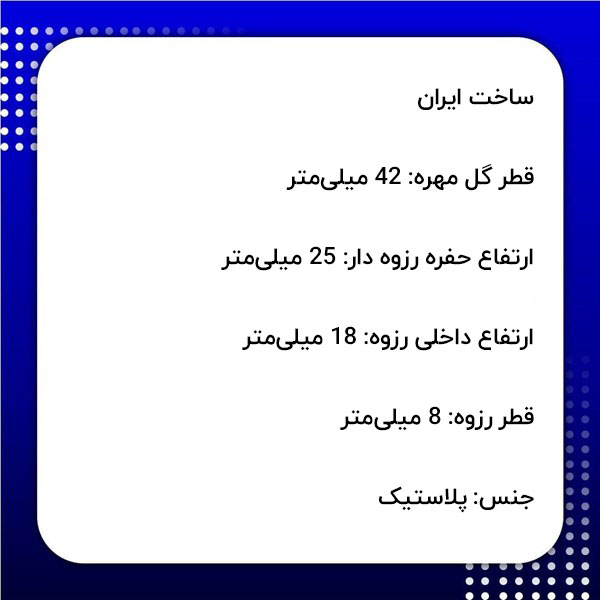 - ارتفاع داخلی رزوه: 18 میلیمتر